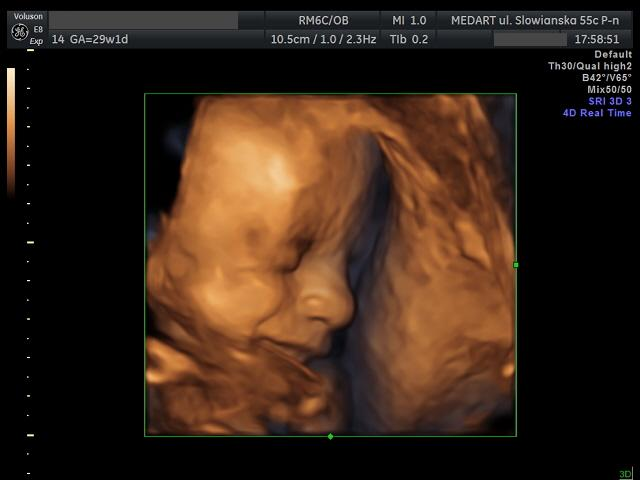w wybranych sytuacjach klinicznych możliwe jest zastosowanie dostępnego w Ośrodku sprzętu ultrasonograficznego do trójwymiarowej wizualizacji i archiwizacji wybranych struktur płodu, a następnie analizy off-line; zgodnie z obowiązującymi rekomendacjami podstawą oceny anatomii płodu jest badanie wykonywane w prezentacji 2D